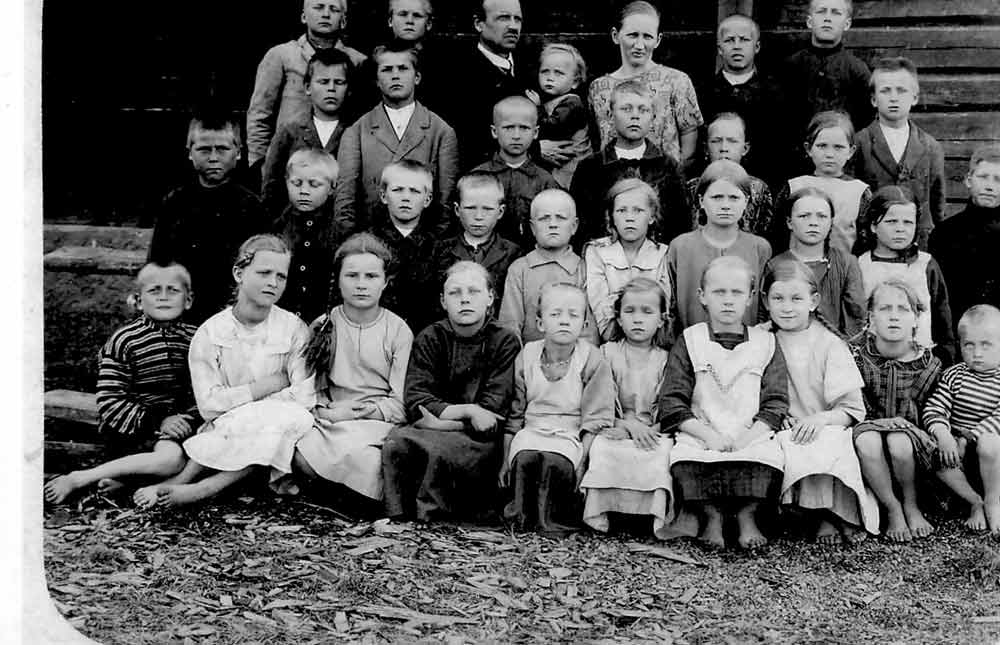 Ensimmäinen rivi vasemmalta; 2. Alli Ylätalo 3. Toimi Mattila. Opettaja August Tulkki