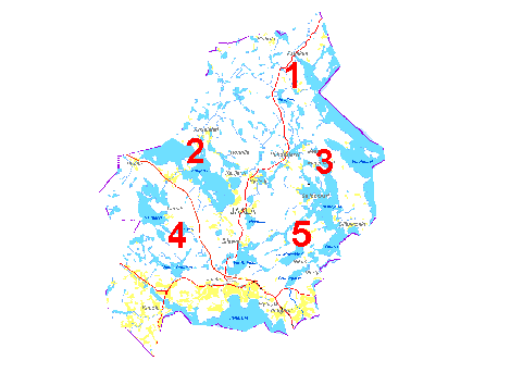 Klikkaamalla kartan numeroita pääset kyseiselle alueelle.