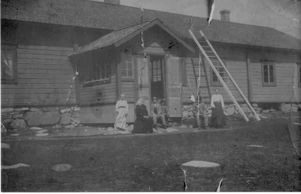 Mäen talon pihalla 1904. Vasemmalta; Saima, Leena, Jalmar, Martti, Antti ja Maria Alastalo. Kuva. Liisa Hannonen