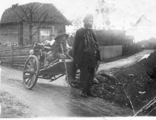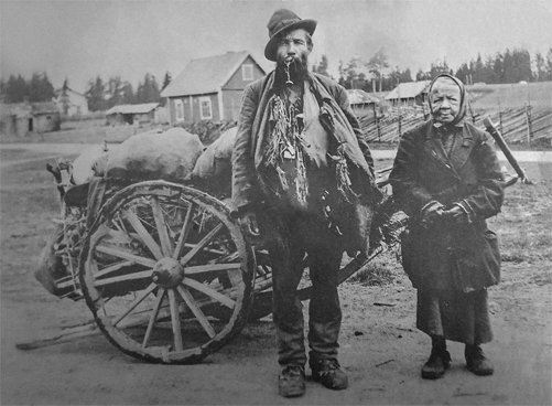 Hanna vaimonsa kanssa. He kulkivat isoja kärryjä työntäen tai vetäen,